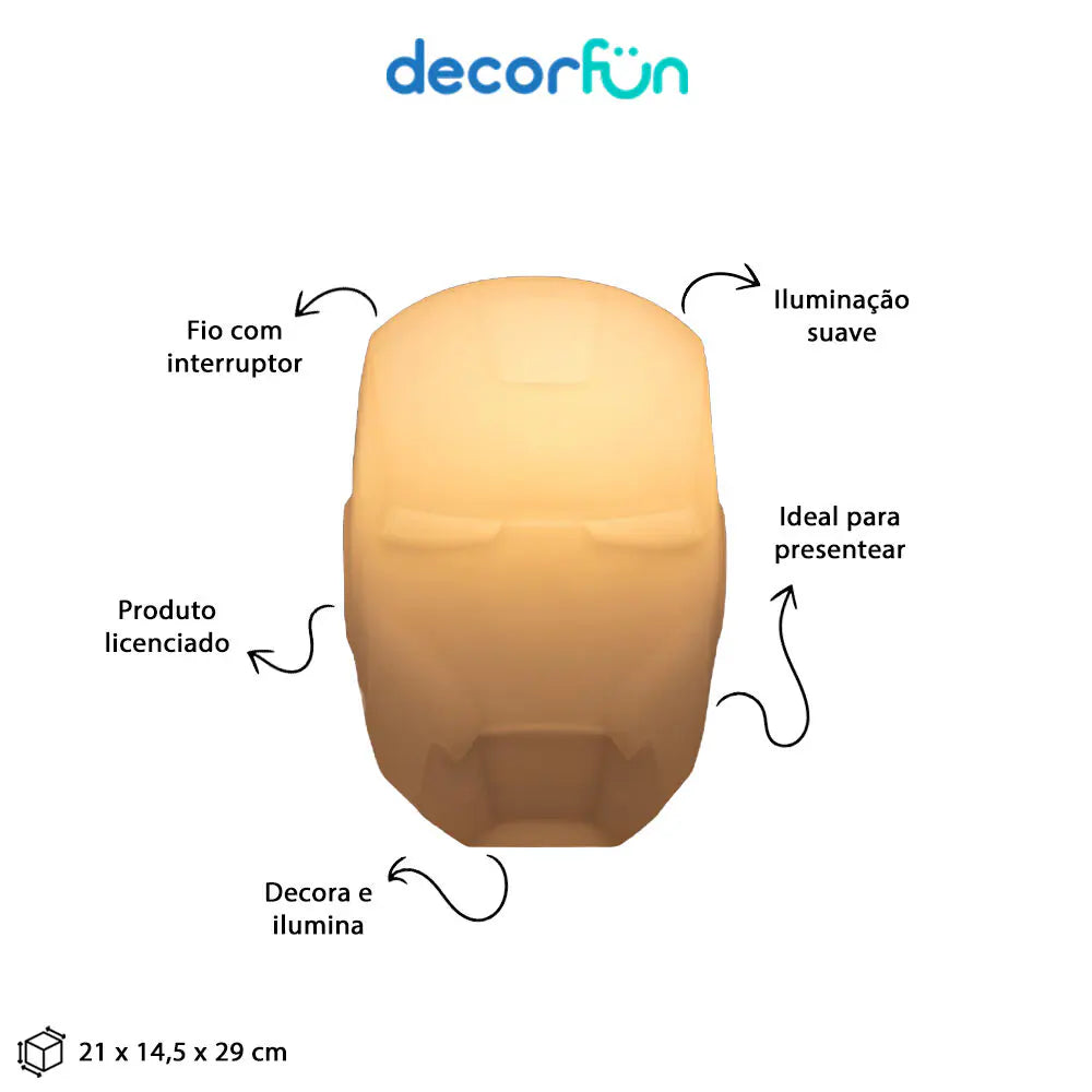 A Luminária de Mesa Capacete Homem de Ferro Marvel Iron Man vai alegrar e divertir qualquer lugar que ela estiver, com um toque de heroísmo e muita personalidade ela é um intem incrível para fãs de super-heroís!